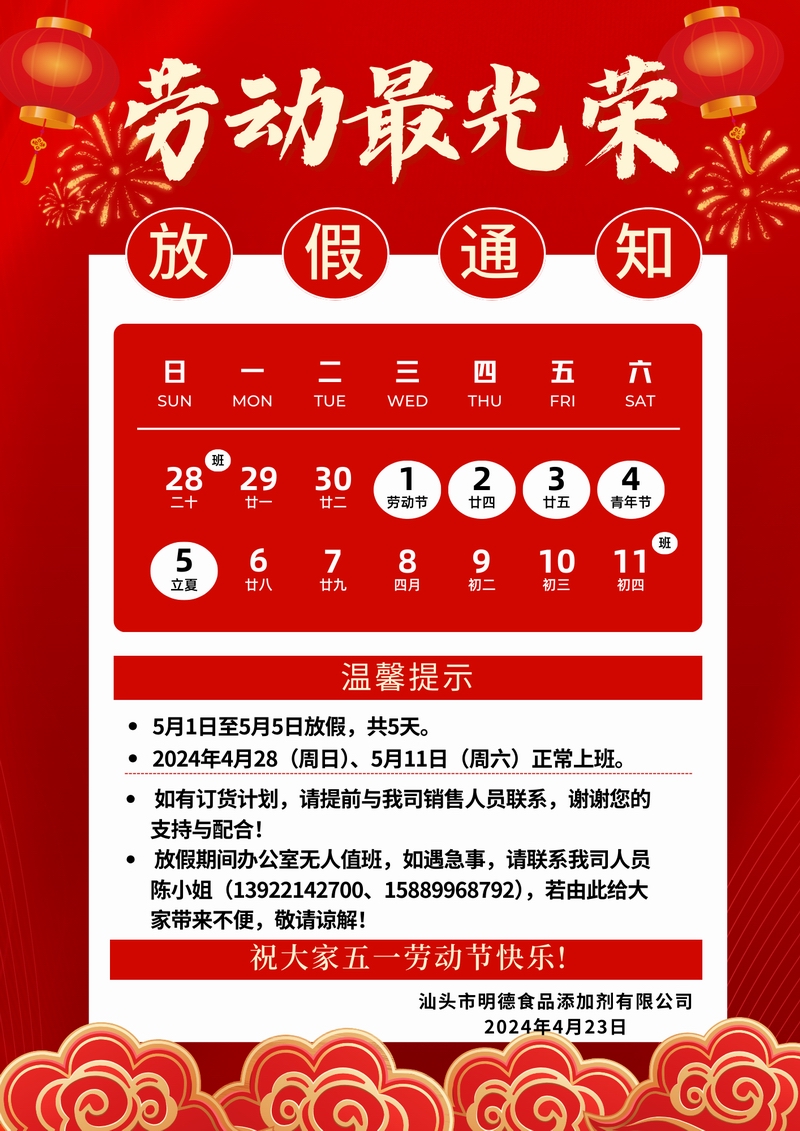 2024年勞動節(jié)假期通知